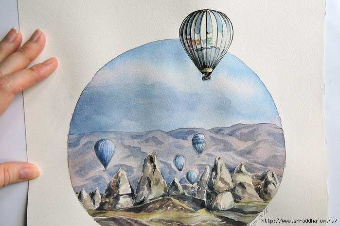 Каппадокия шары акварель