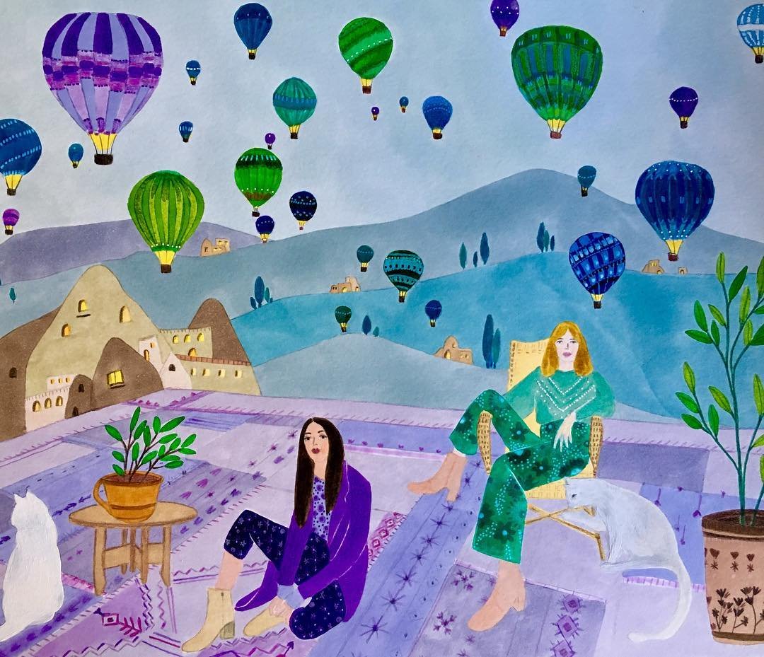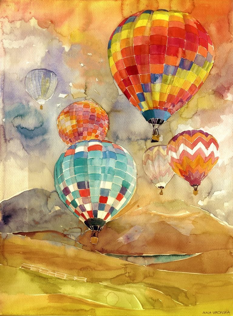 Воздушные шары Каппадокия акварель