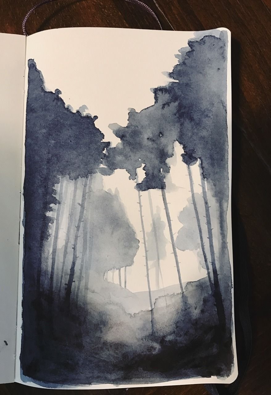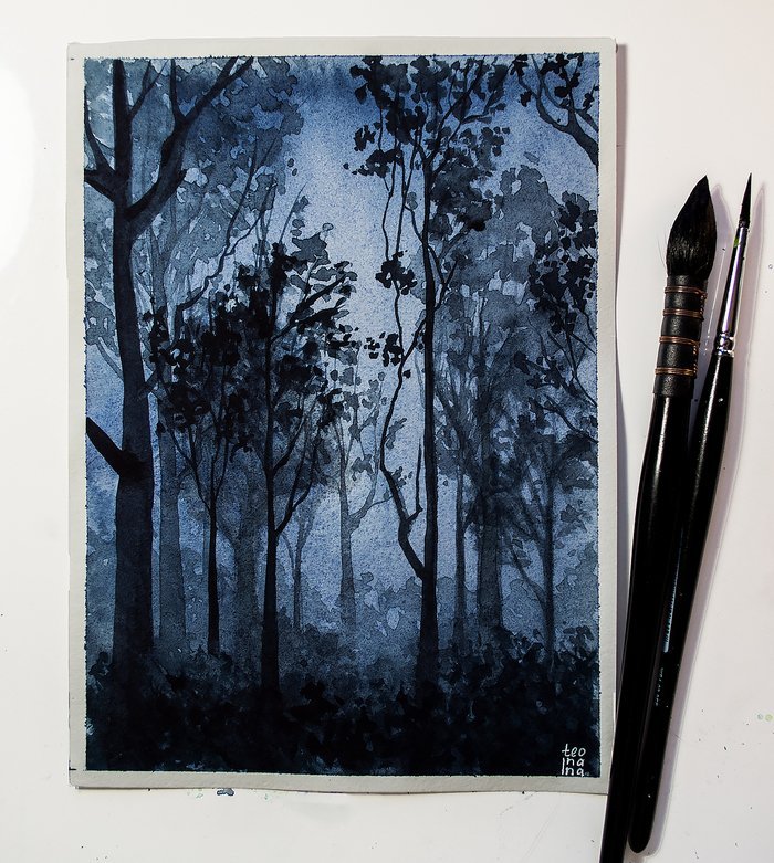 ![Темный лес акварелью]()