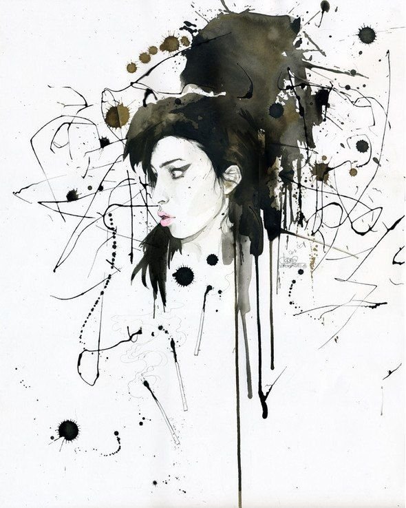 ![Зарисовки черной акварелью]()