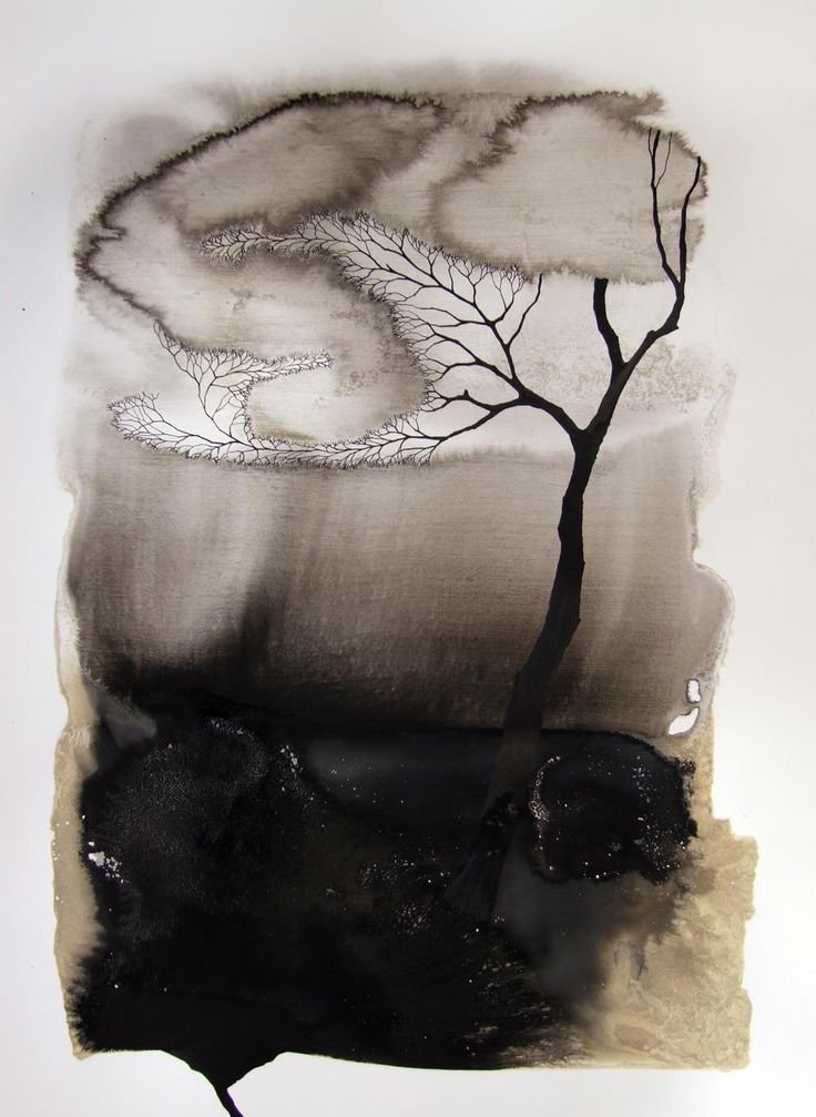 ![Мрачный пейзаж акварелью]()