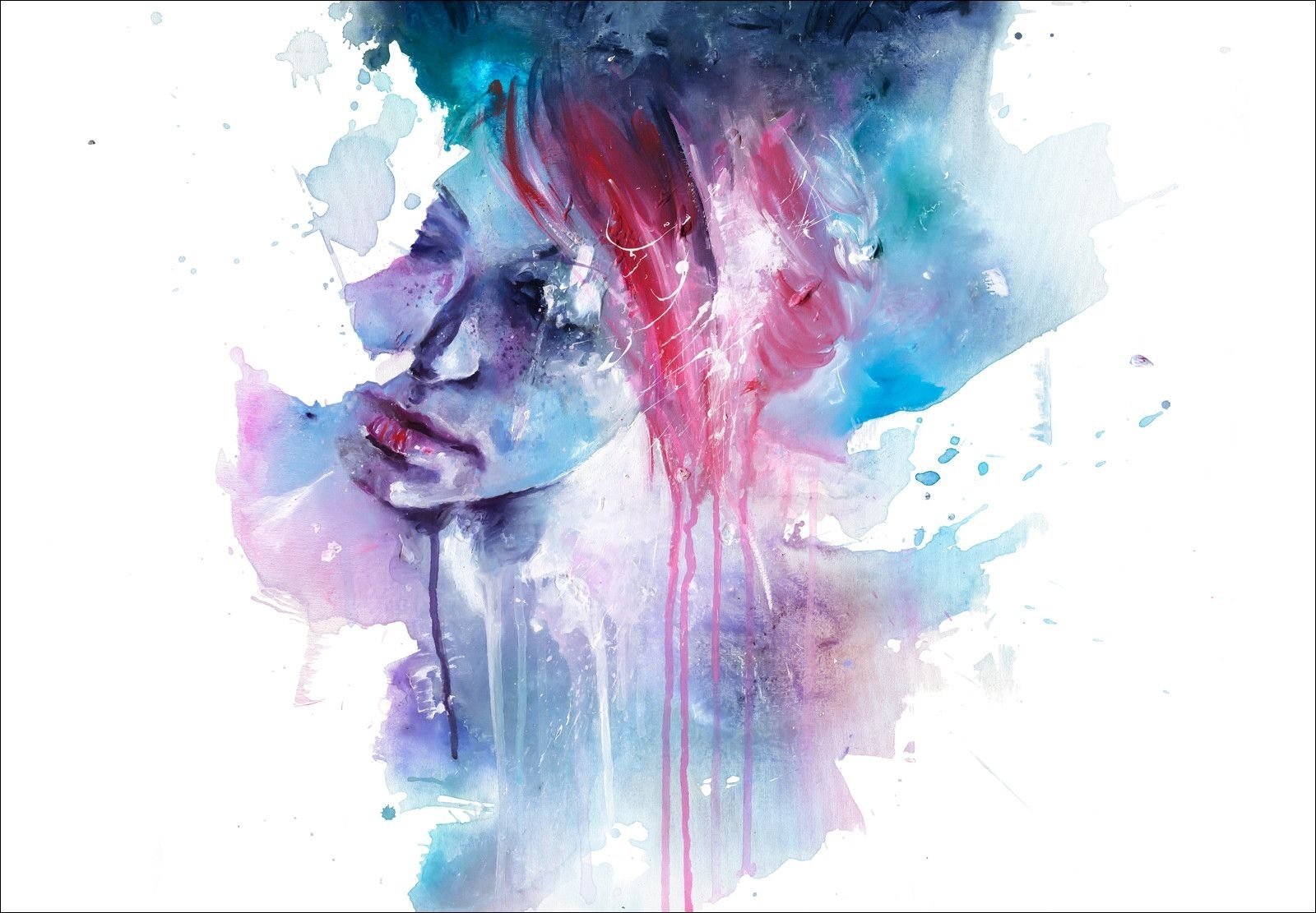 Черные волосы акварелью