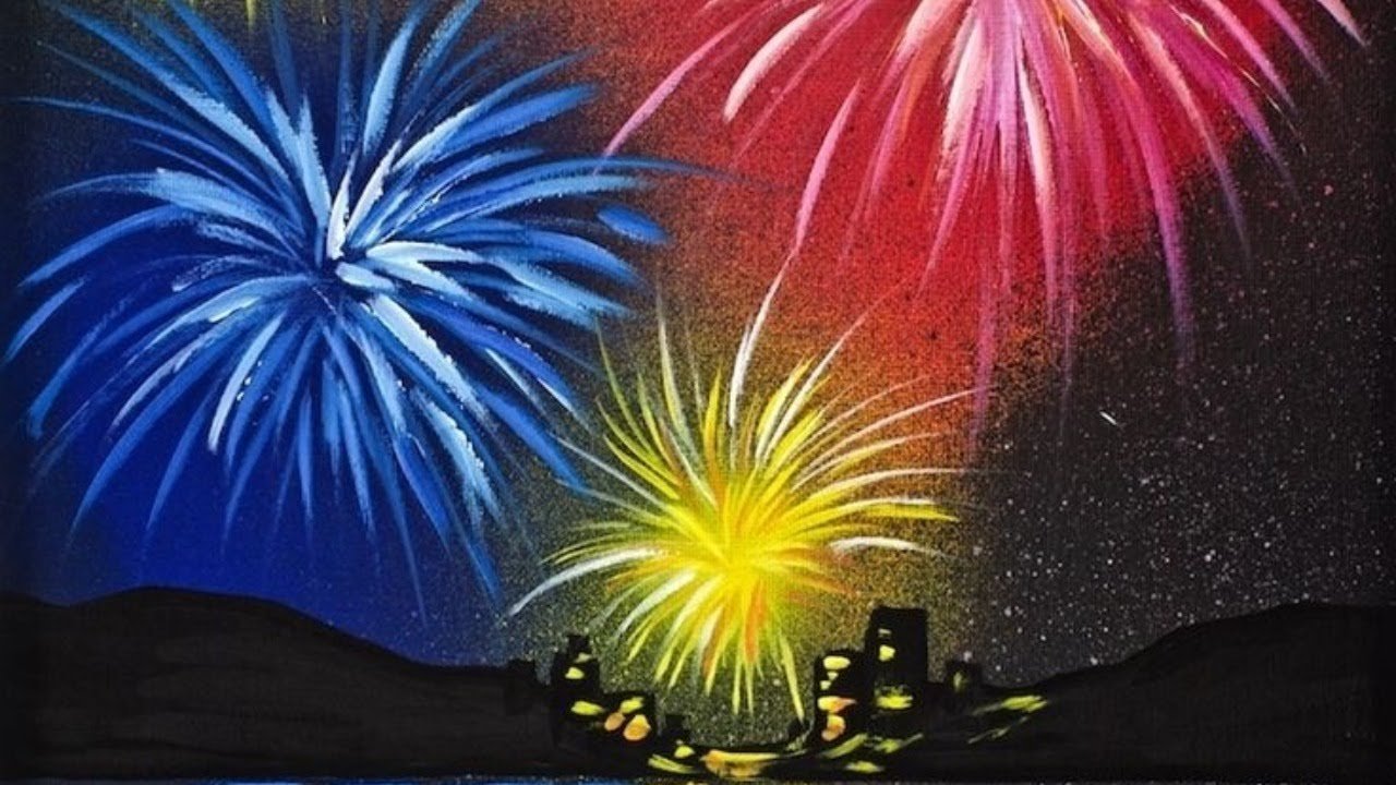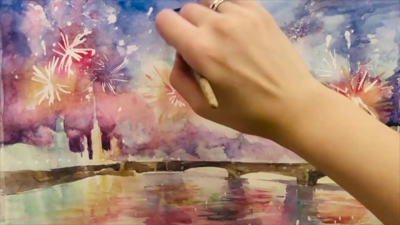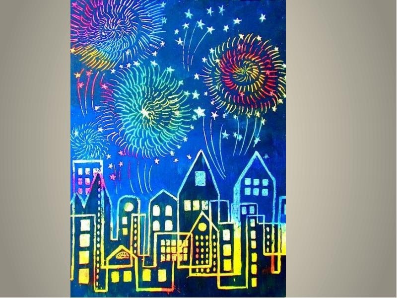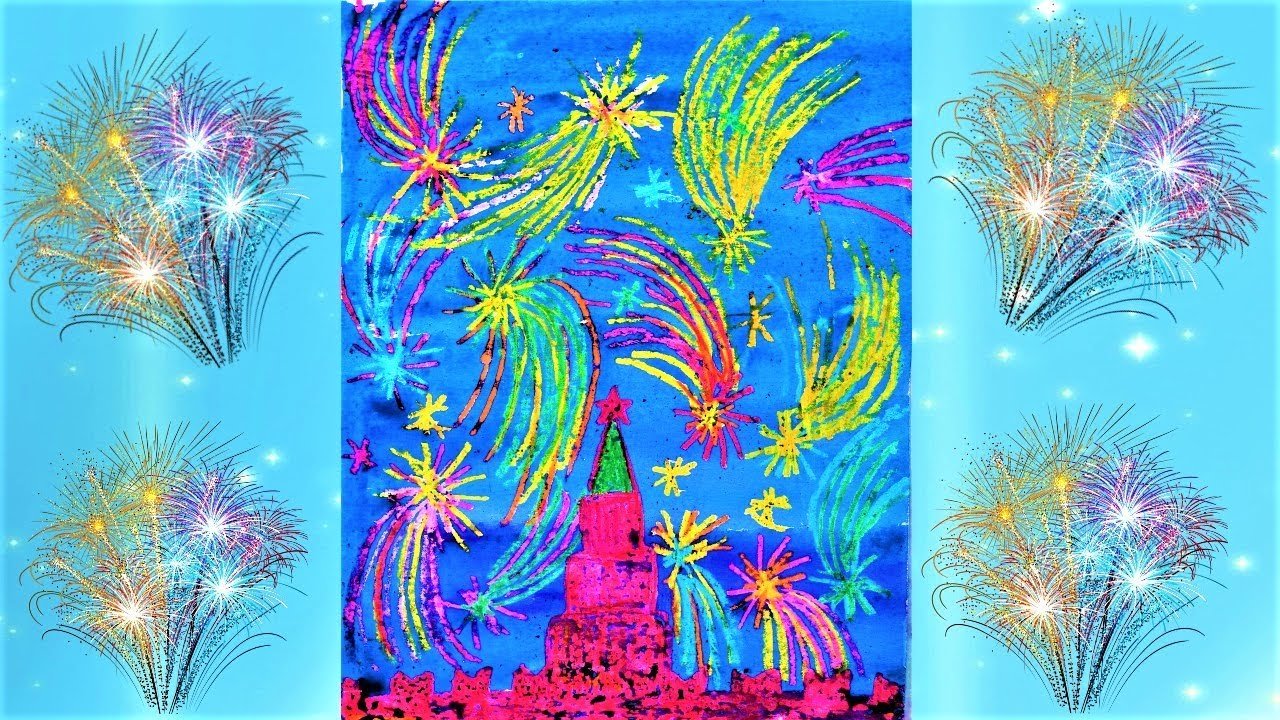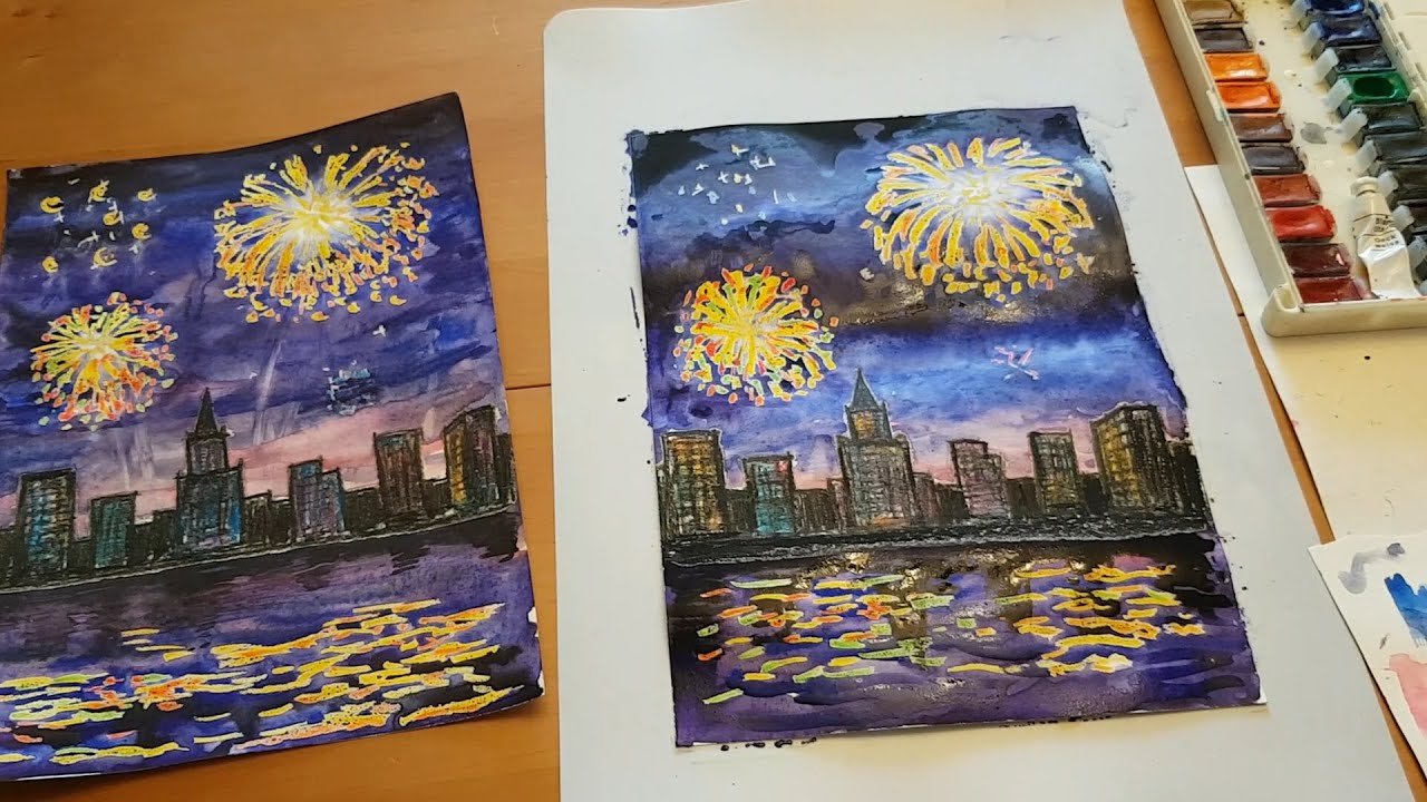 ![Восковые мелки и акварель техника рисования для детей салют]()