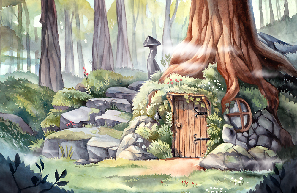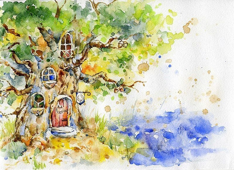 ![Сказочный домик акварелью]()