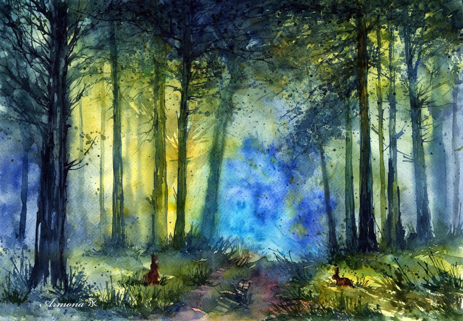 ![Лес акварелью]()