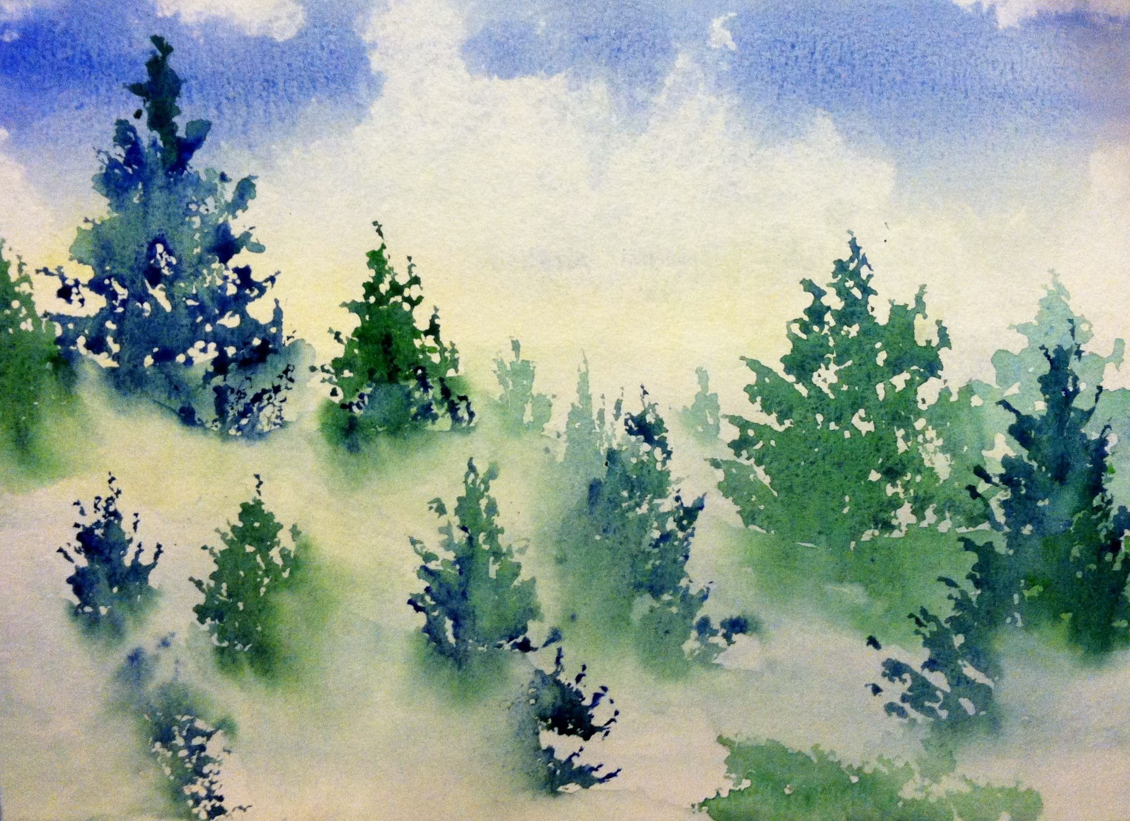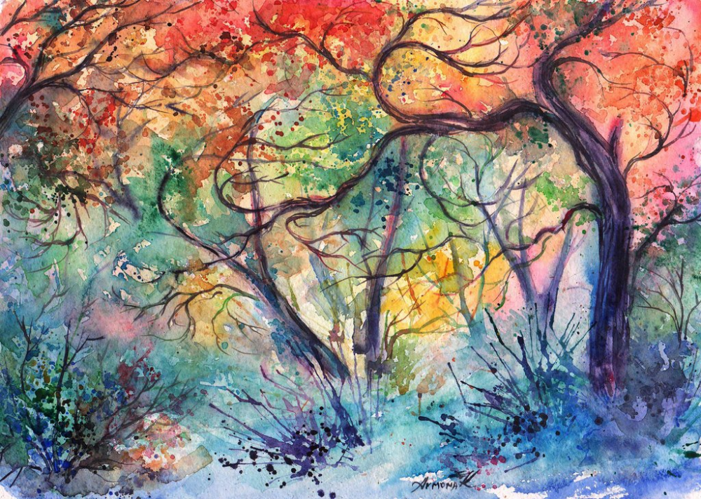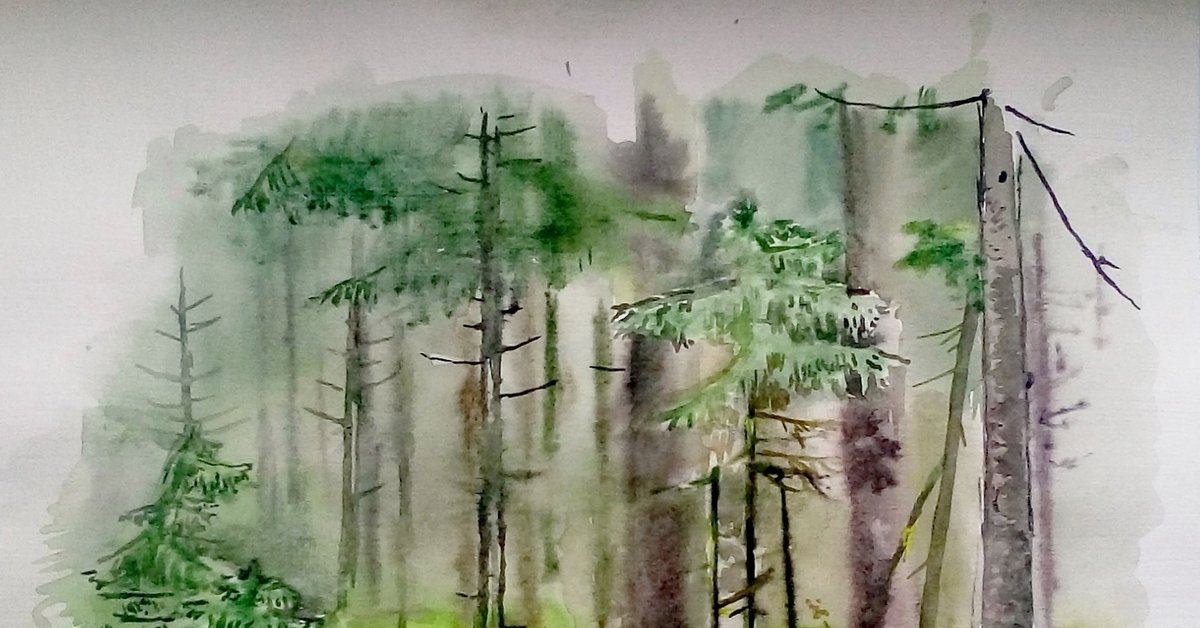 Лес акварелью