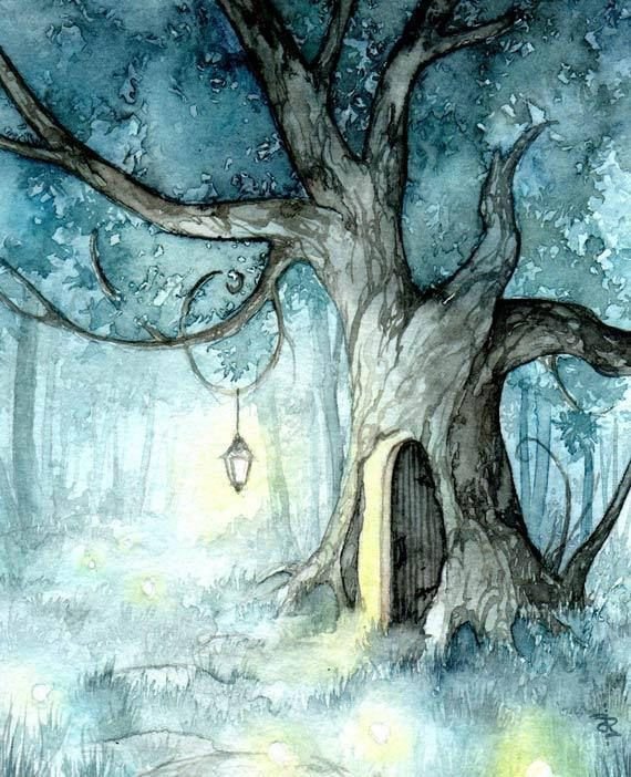 ![Волшебный лес акварель]()