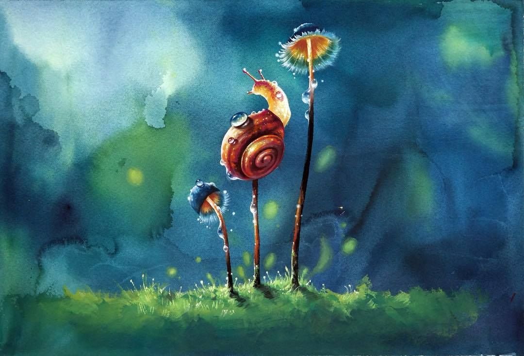 ![Улитка акварелью]()