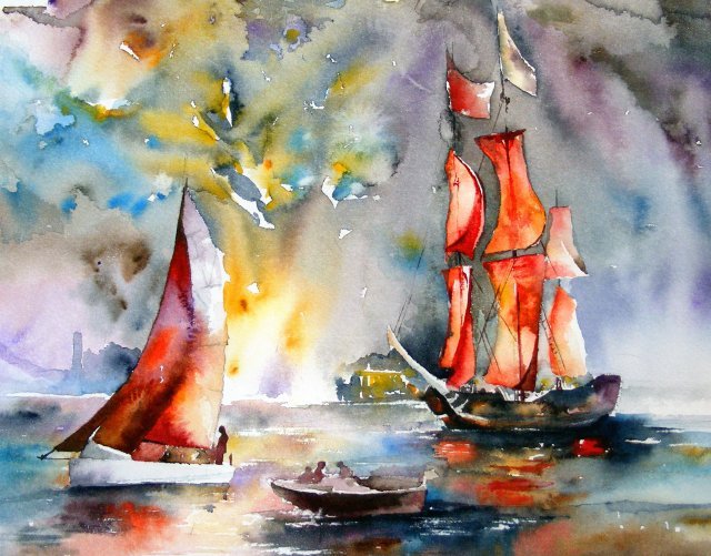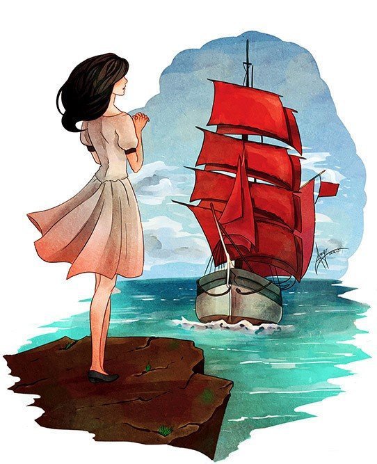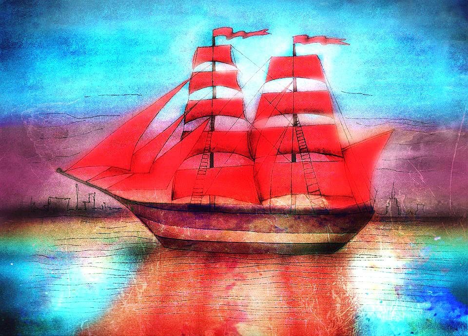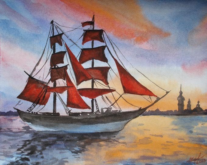 Рисунок акварелью "Алые паруса" - это нежное и воздушное произведение искусства, которое поражает своей красотой и элегантностью. Изображение пленит взгляд зрителя своими яркими и сочными оттенками красного цвета, создавая атмосферу чарующей романтики и приключений. Алые паруса, украшающие рисунок, символизируют свободу, стремление к новым горизонтам и неуемную жажду приключений. Каждая капля акварельной краски тщательно расставлена на холсте, создавая иллюзию легкости и движения. Рисунок акварелью "Алые паруса" станет прекрасным украшением для интерьера, наполнив его нотками морского ветра и волнения.