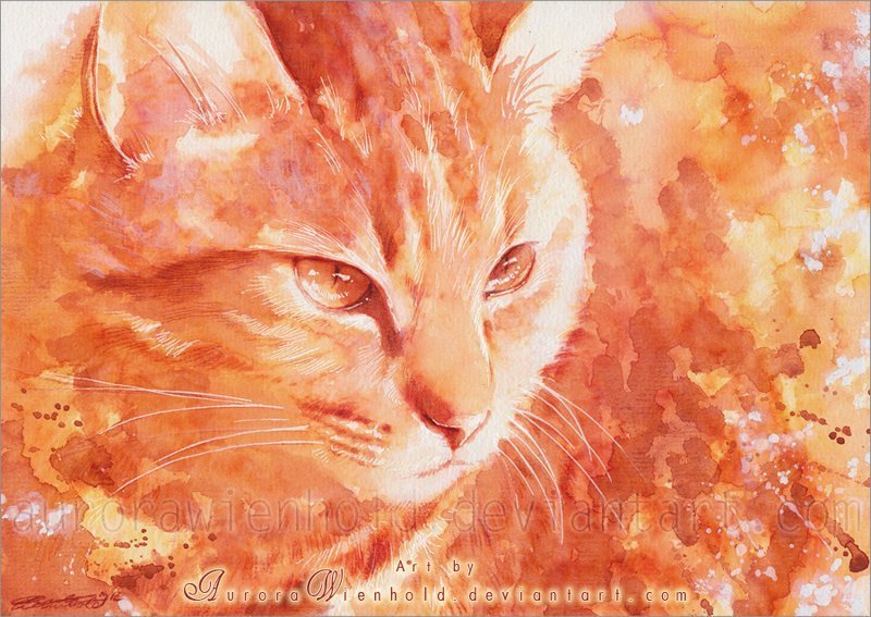 ![Рыжий кот акварелью]()