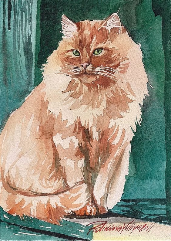 ![Кот акварелью]()
