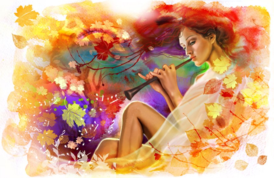 ![Девушка осень маслом]()