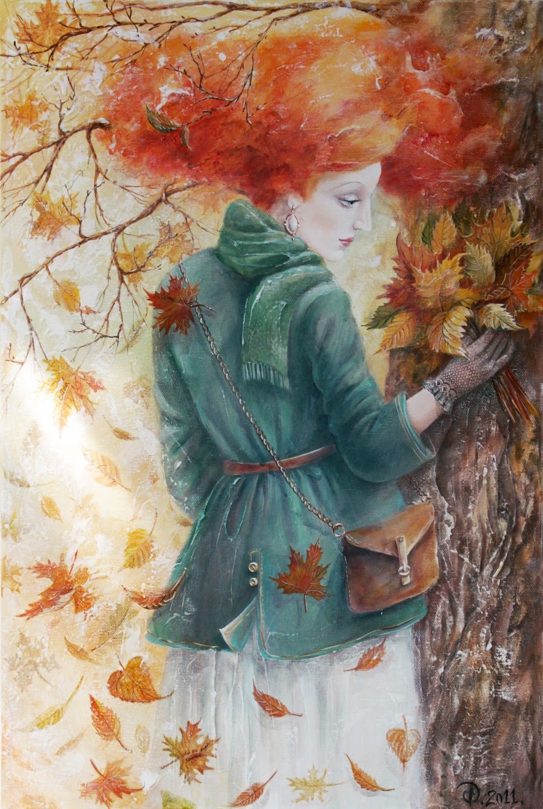 Девушка осень маслом