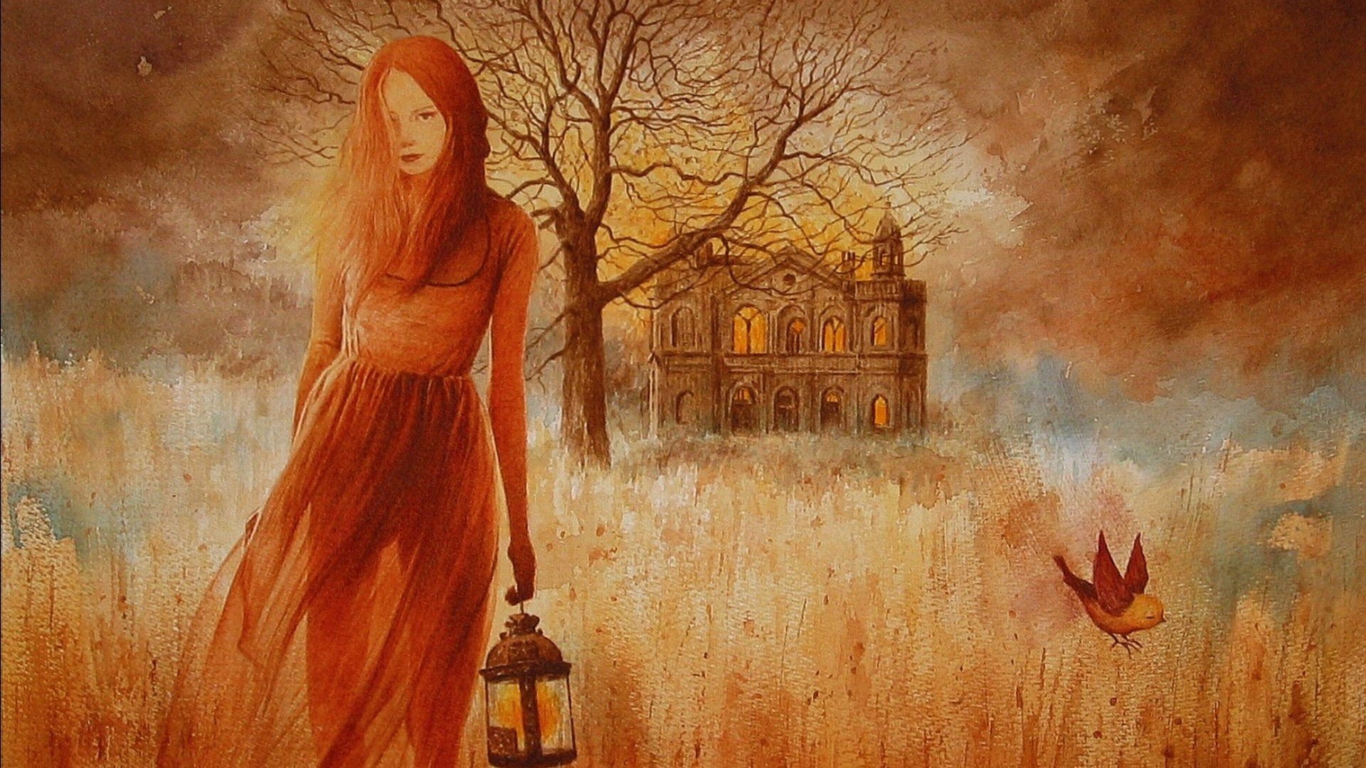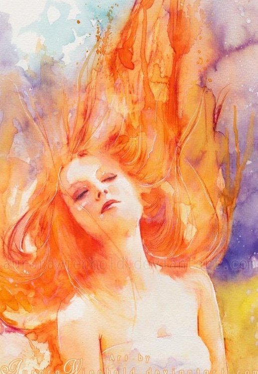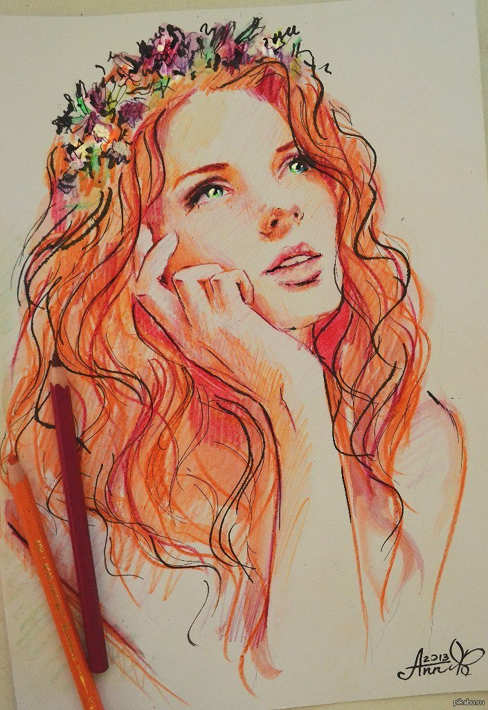 ![Рыжая девушка акварель]()