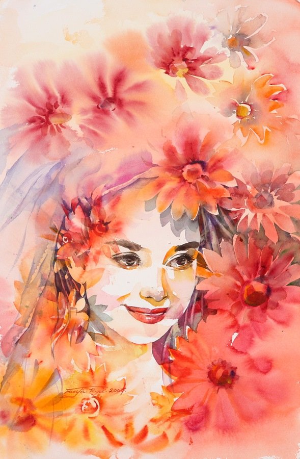 ![Женщина Весна акварель]()