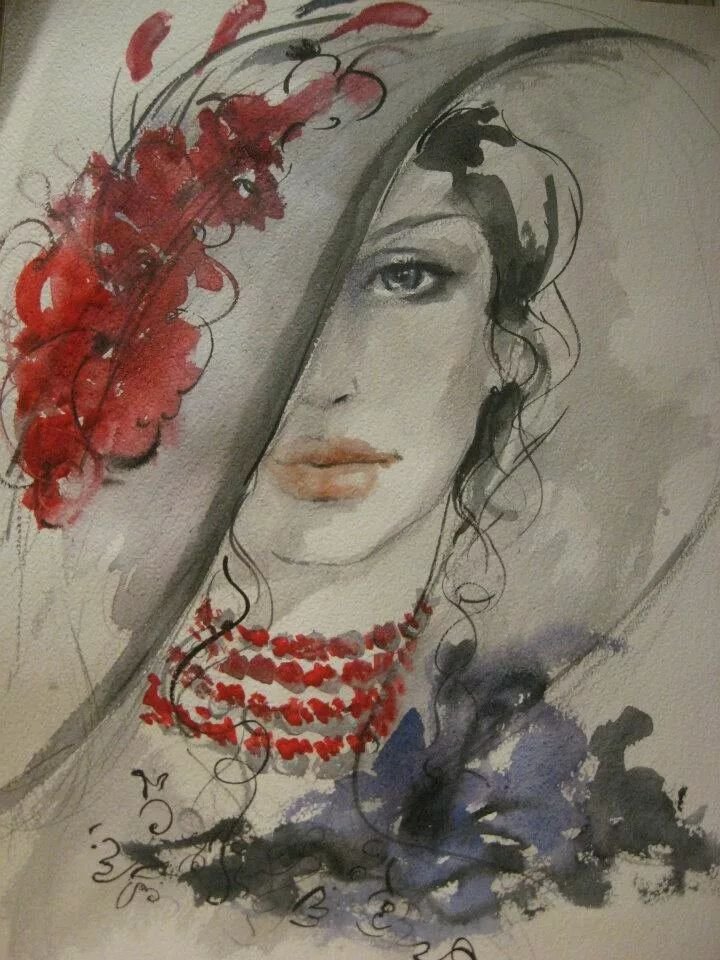 ![Женщина акварель силуэт]()