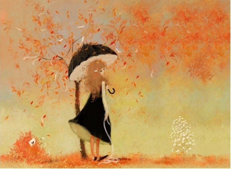 ![Осенняя девушка акварель]()