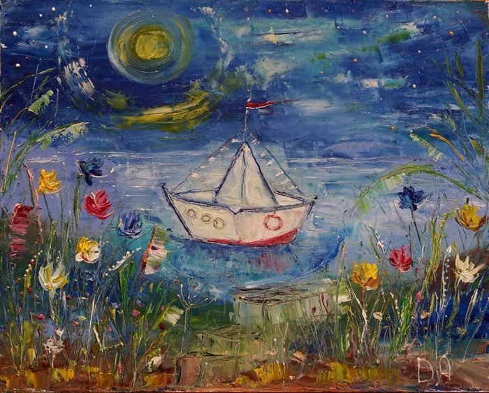 Бумажный кораблик живопись