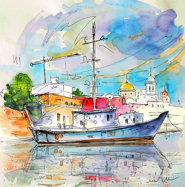 ![Кораблик акварель эскиз]()