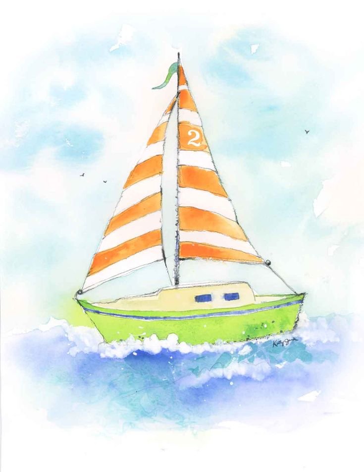 Парусник для детей акварелью
