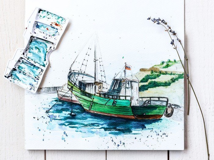 Корабль акварелью