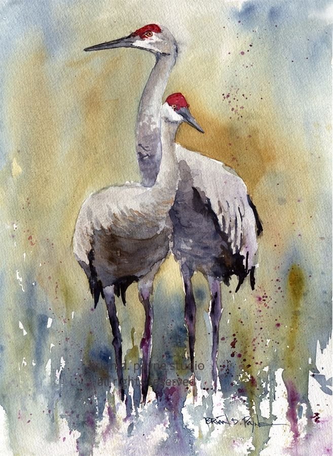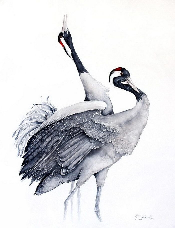 ![Журавль акварель]()