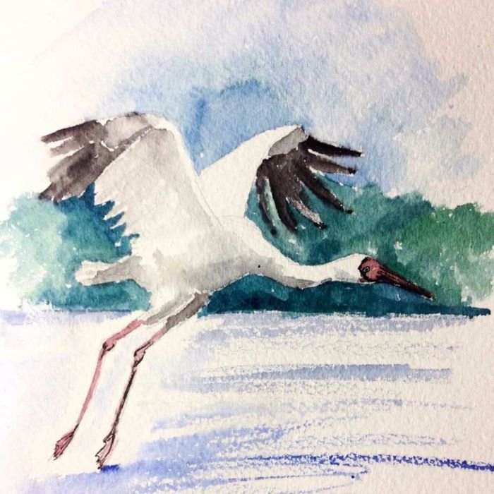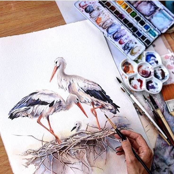 ![Аист акварель]()
