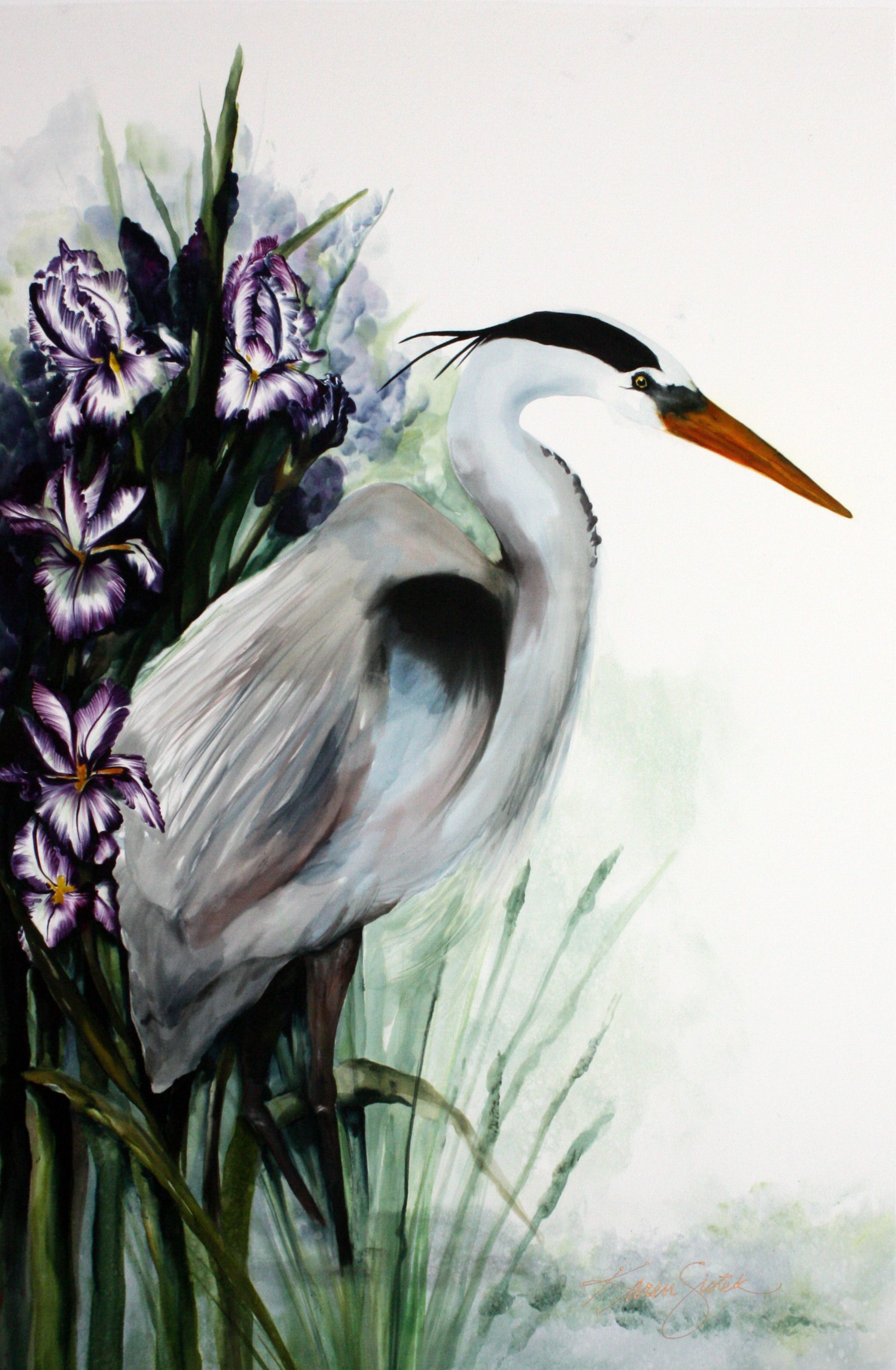 ![Цапля акварель]()