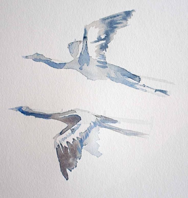 ![Птицы в небе акварель]()