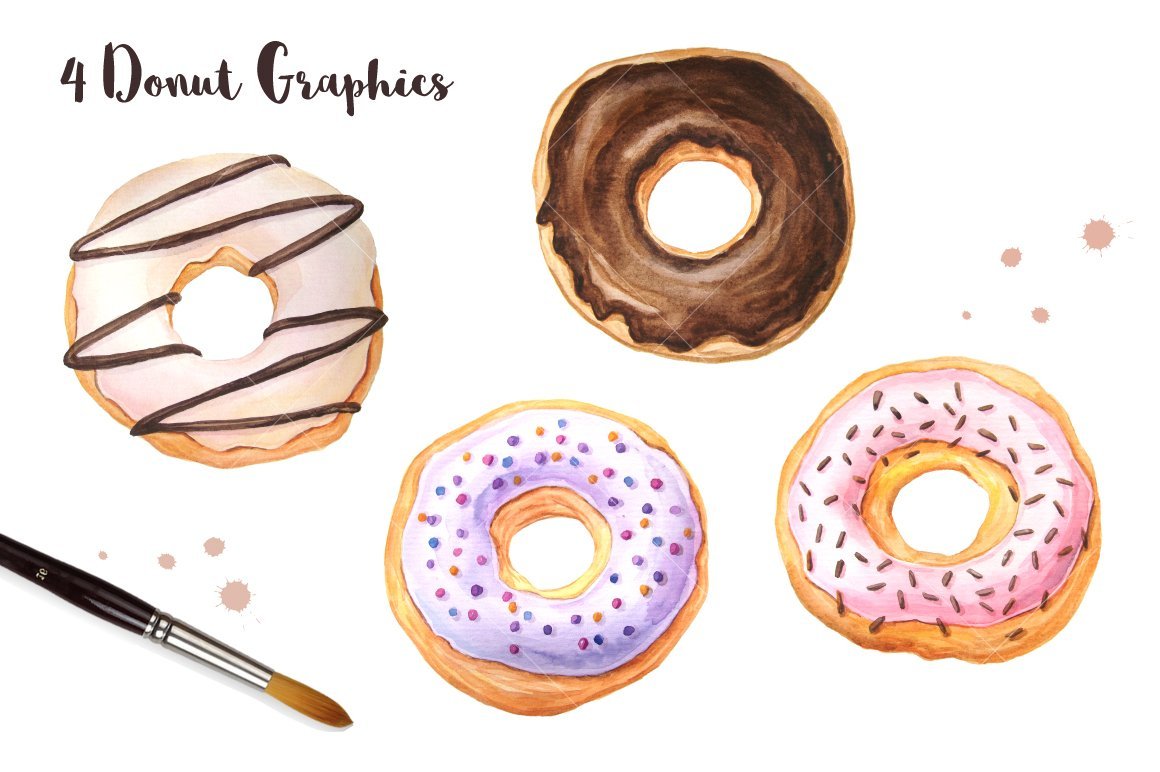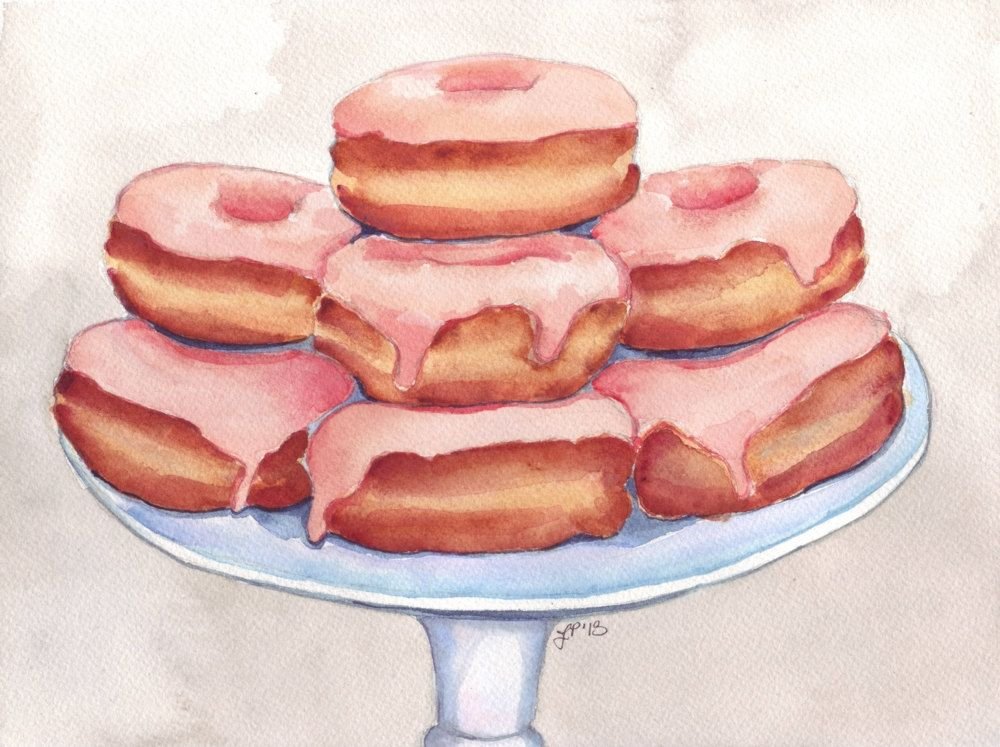 ![Пончики нарисованные акварелью]()