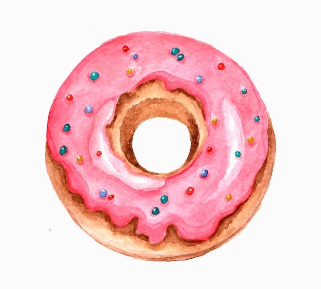 Розовый пончик акварель