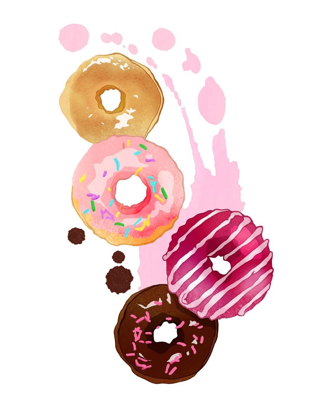 Пончики нарисованные акварелью