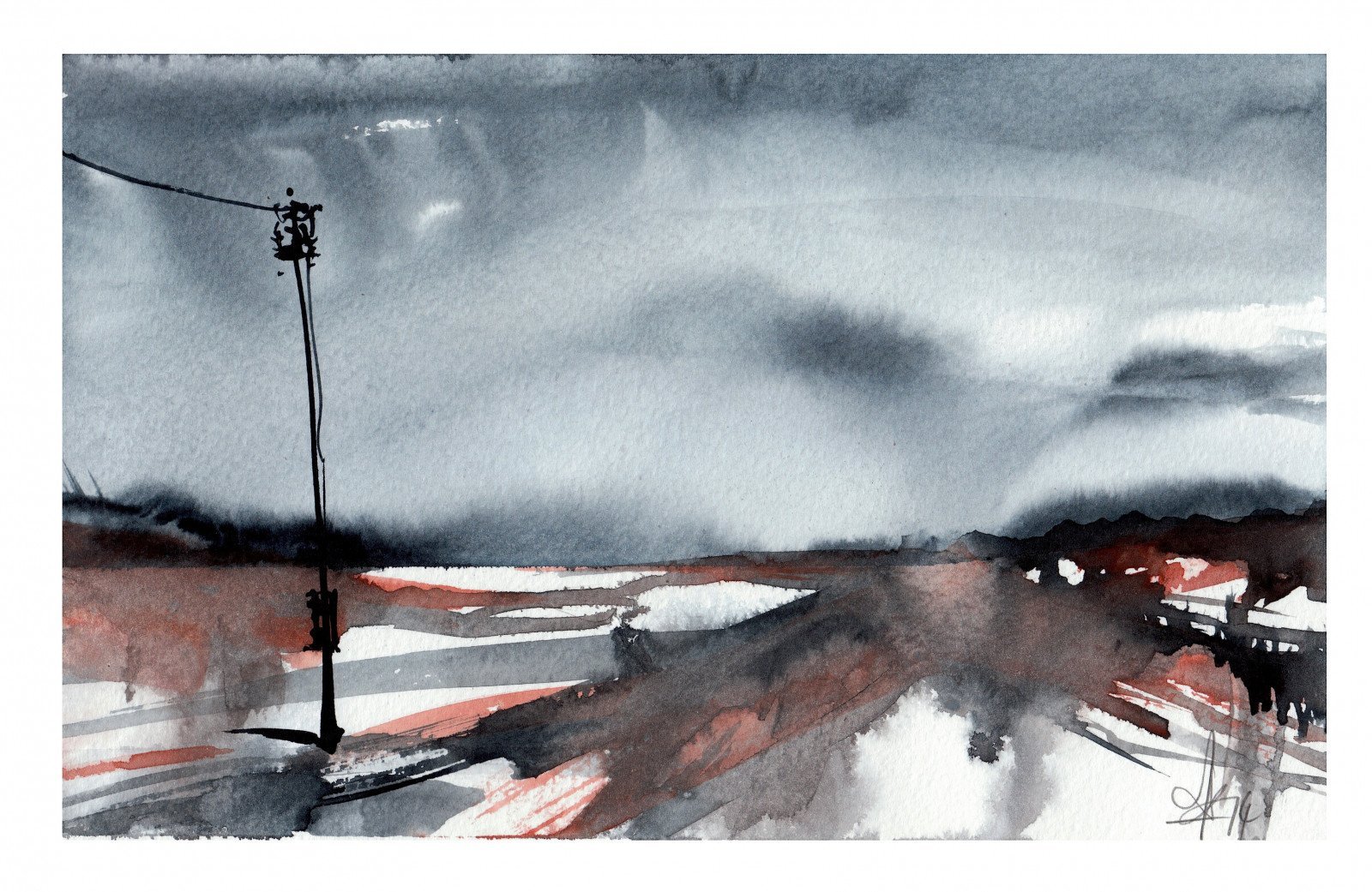 ![Мрачный пейзаж акварелью]()