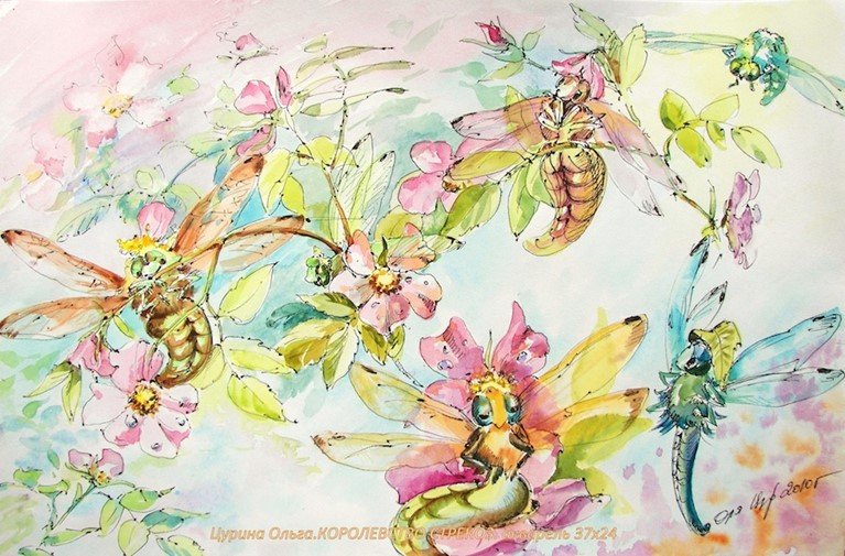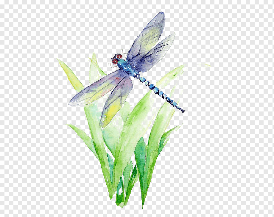 ![Стрекоза акварель]()
