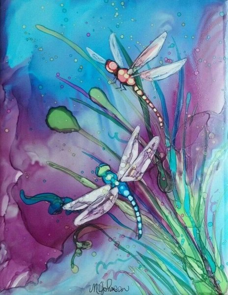![Стрекозы батик акварель]()
