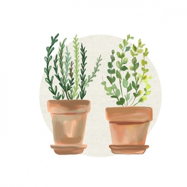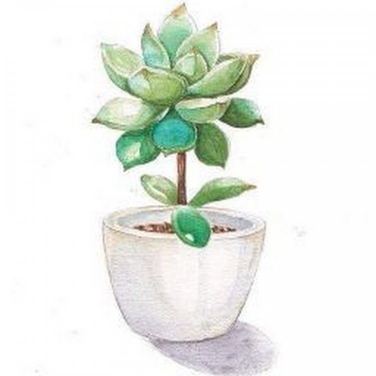 ![Растение в горшочке акварелью]()