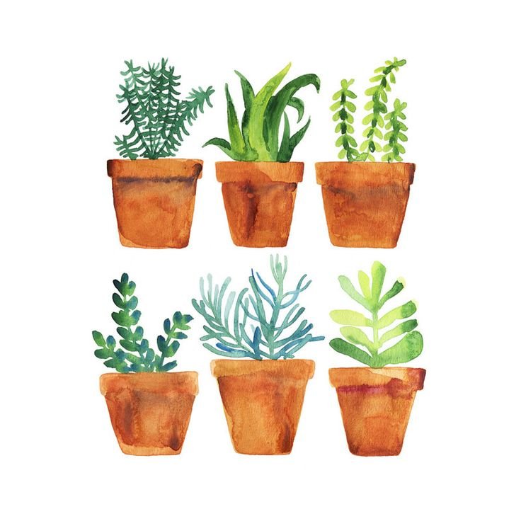 ![Цветочки в горшочках акварель]()