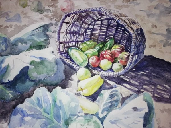 Корзина с овощами акварель