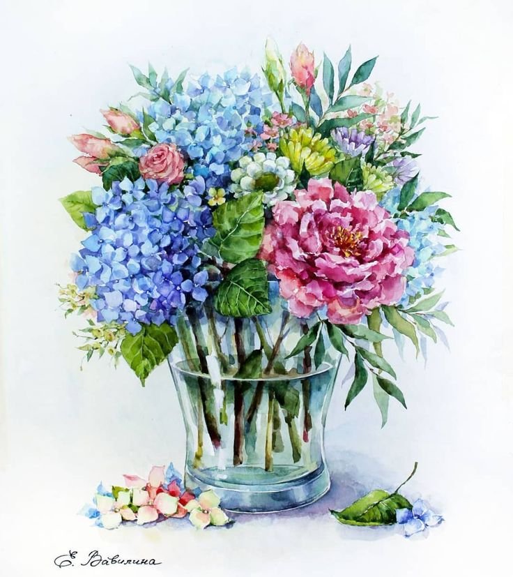 ![Цветы акварель художник Елена Вавилина Акварельные]()