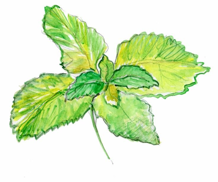![Листья мяты акварель]()