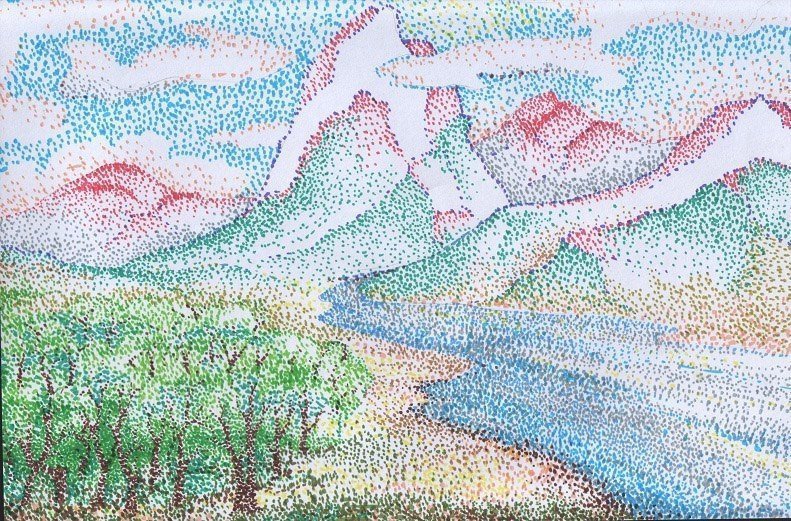 Рисунок акварелью точками - это техника, при которой художник создает изображение, используя множество мелких точек. Каждая точка наносится на бумагу или другую поверхность с помощью кисти, пропитанной акварелью. При этом точки располагаются таким образом, чтобы в результате получилась полноценная картинка. Такая техника позволяет создавать особую глубину и текстуру, добавляет интересные визуальные эффекты и делает рисунок уникальным. Рисование точками акварелью требует терпения и мастерства, но результат стоит всех усилий. Он может быть как реалистичным, так и абстрактным, и каждый художник может воплотить свою индивидуальность в этой технике.