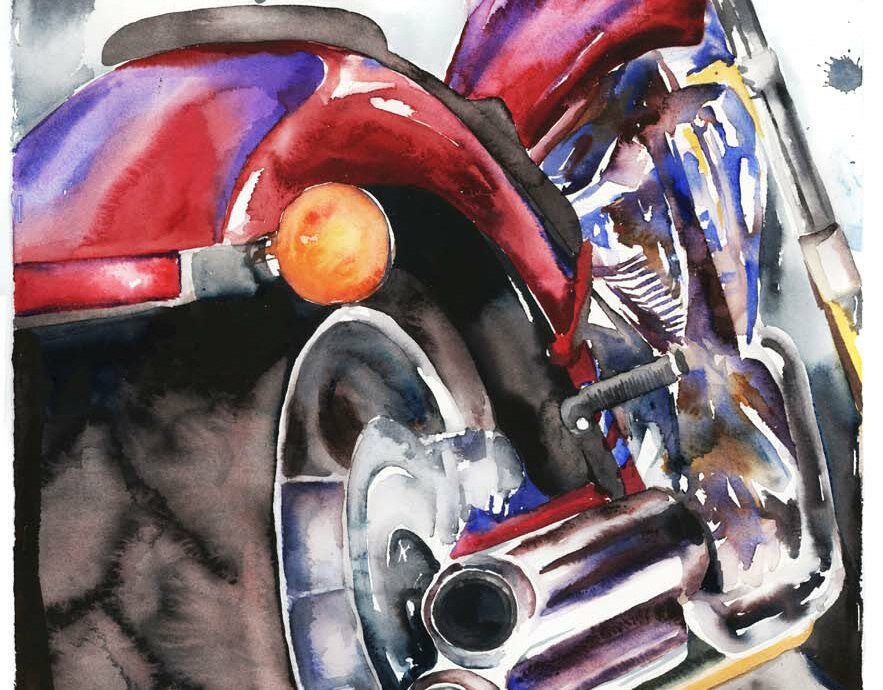 Нарисовать мотоцикл акварелью