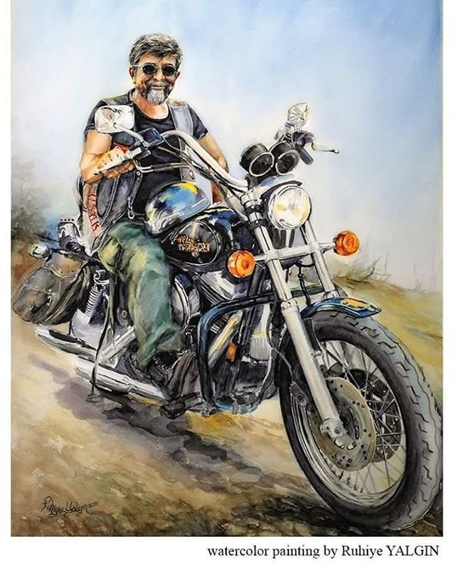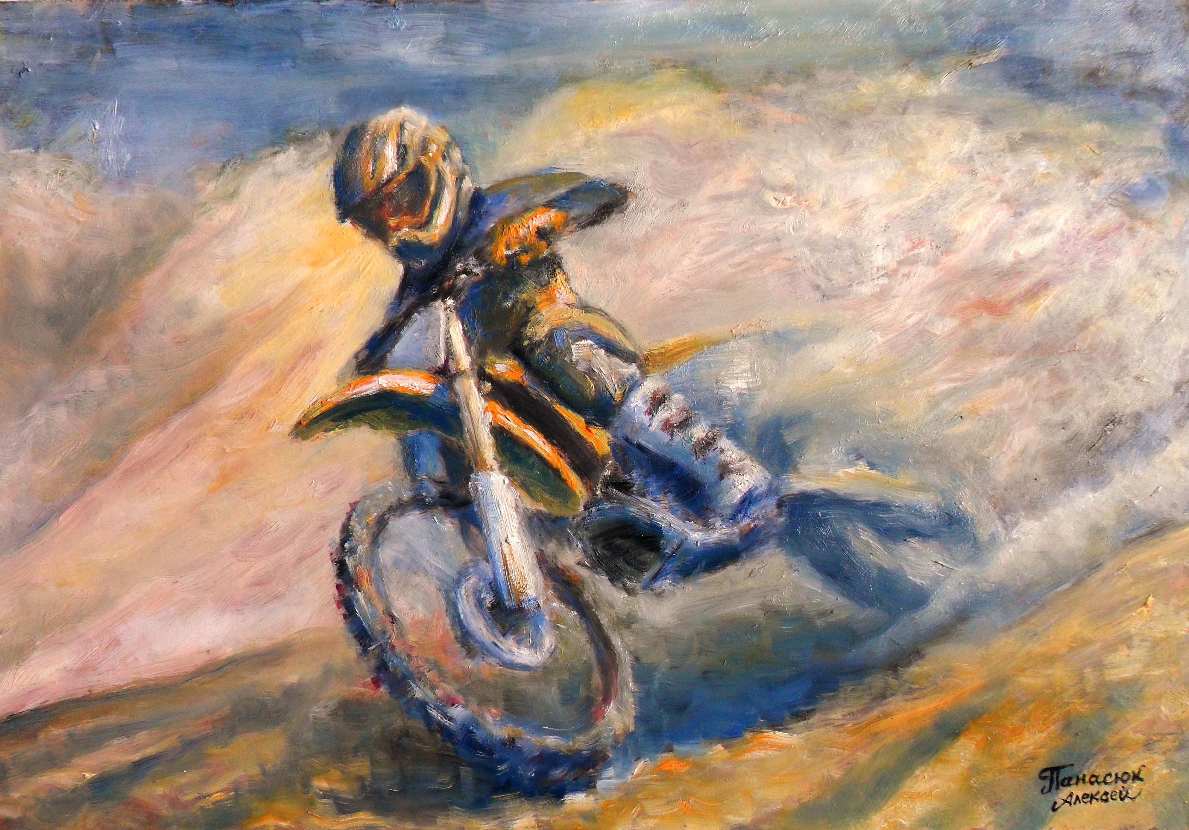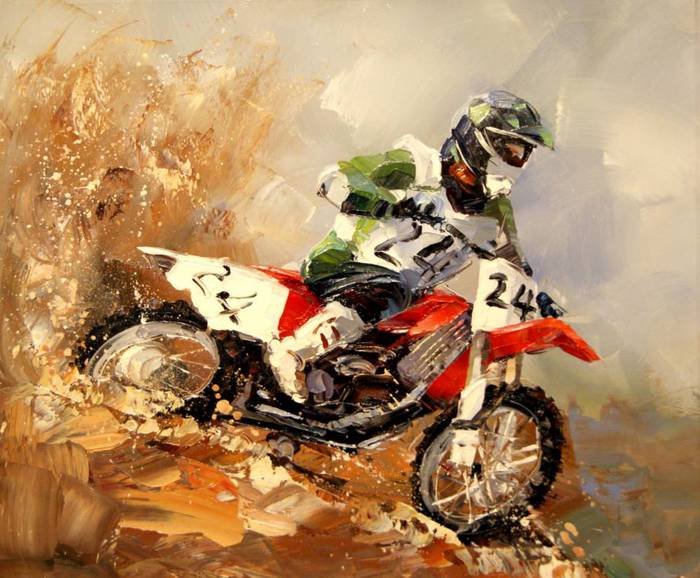 ![Мотоциклист живопись]()