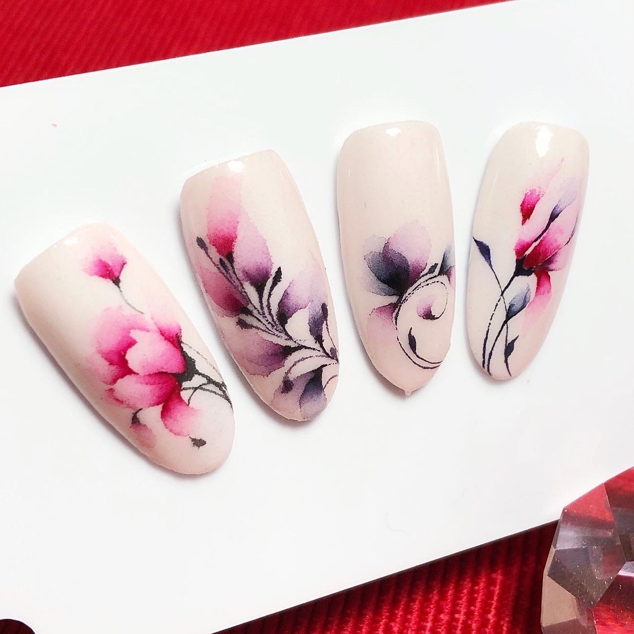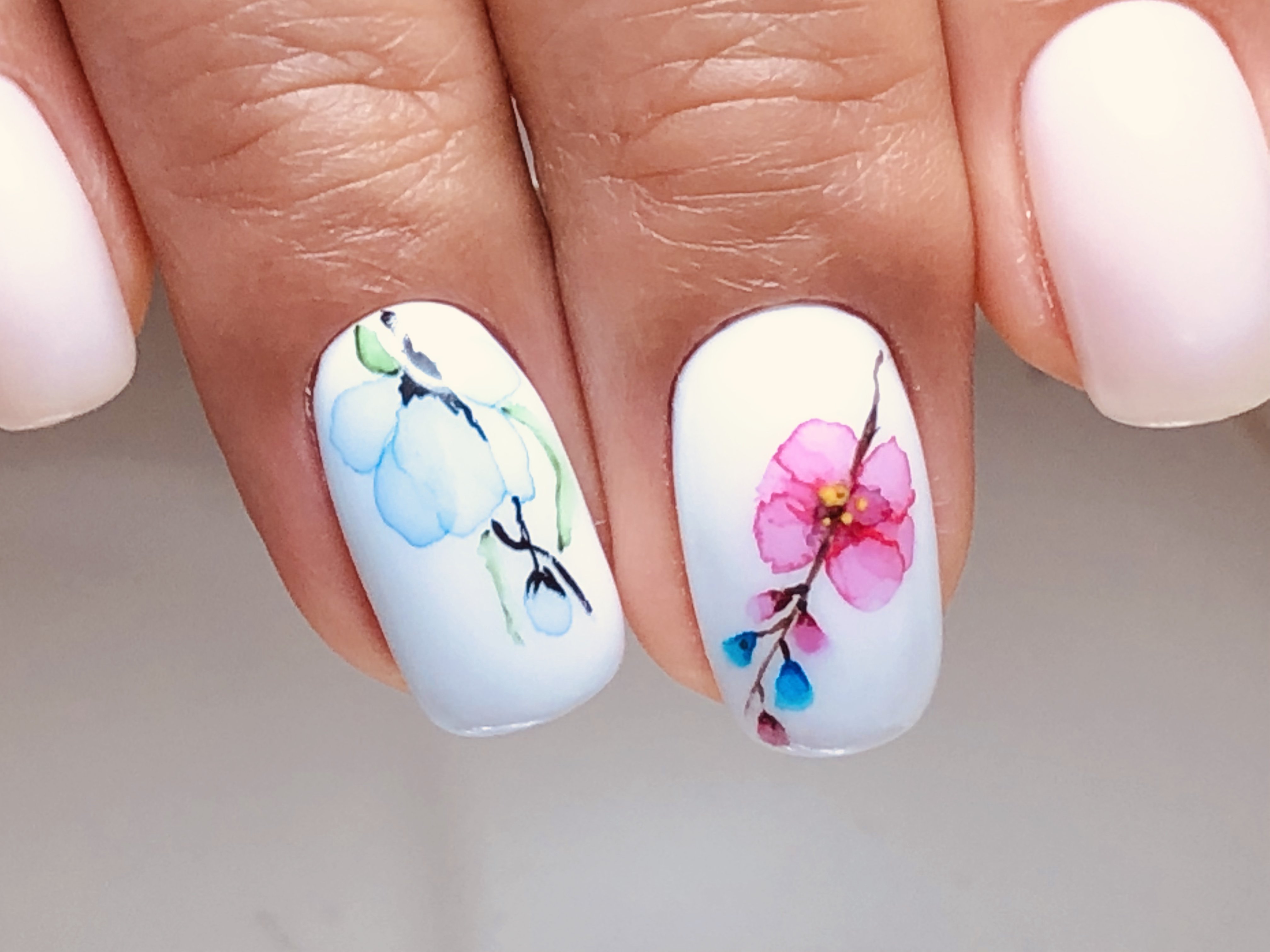 ![Акварельные цветы на ногтях]()