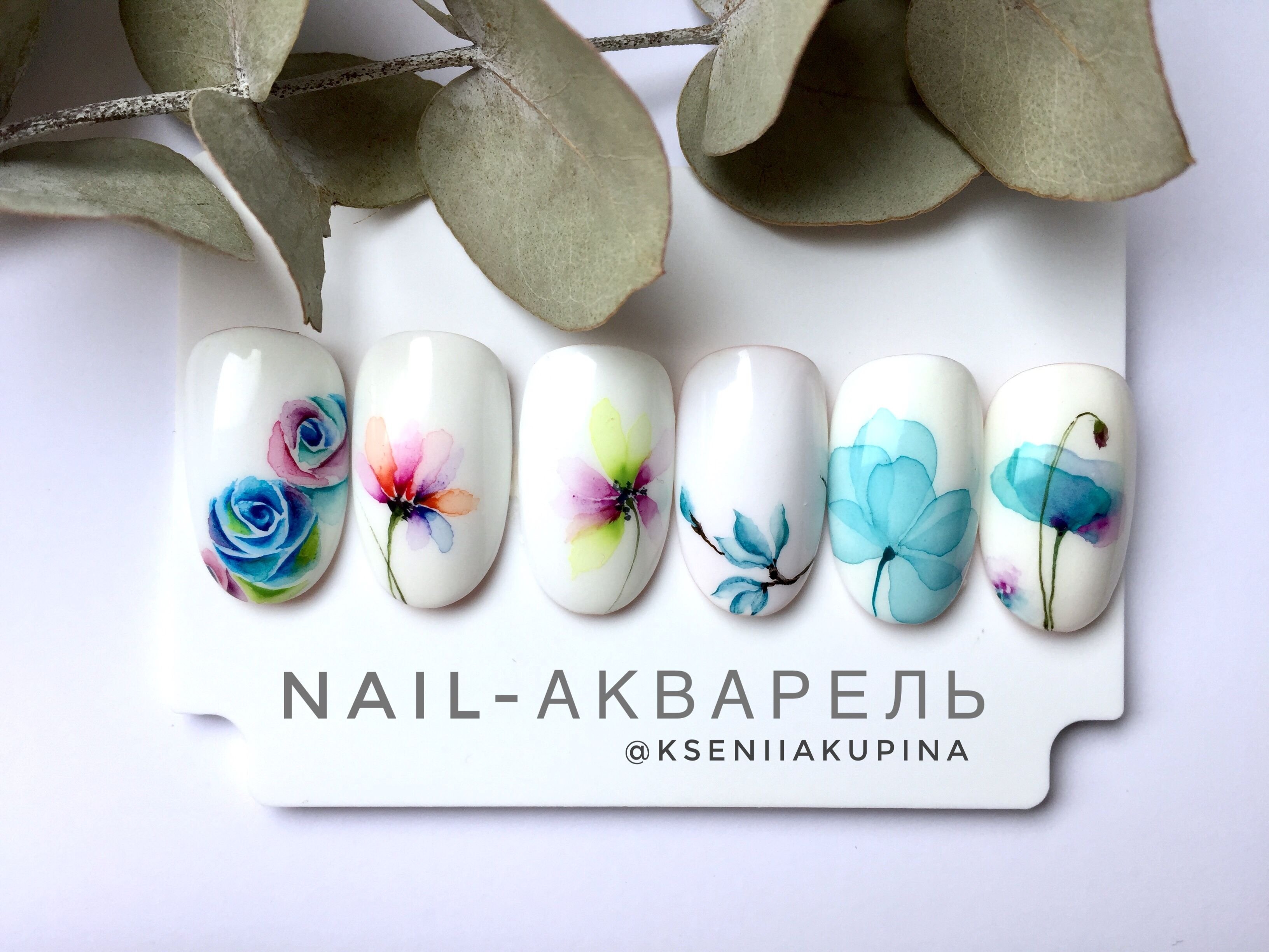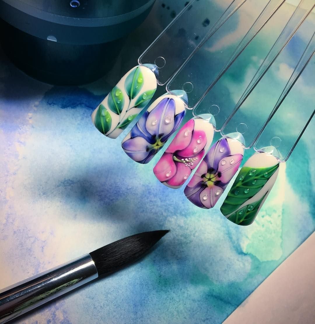 Маникюр акварелью на ногтях