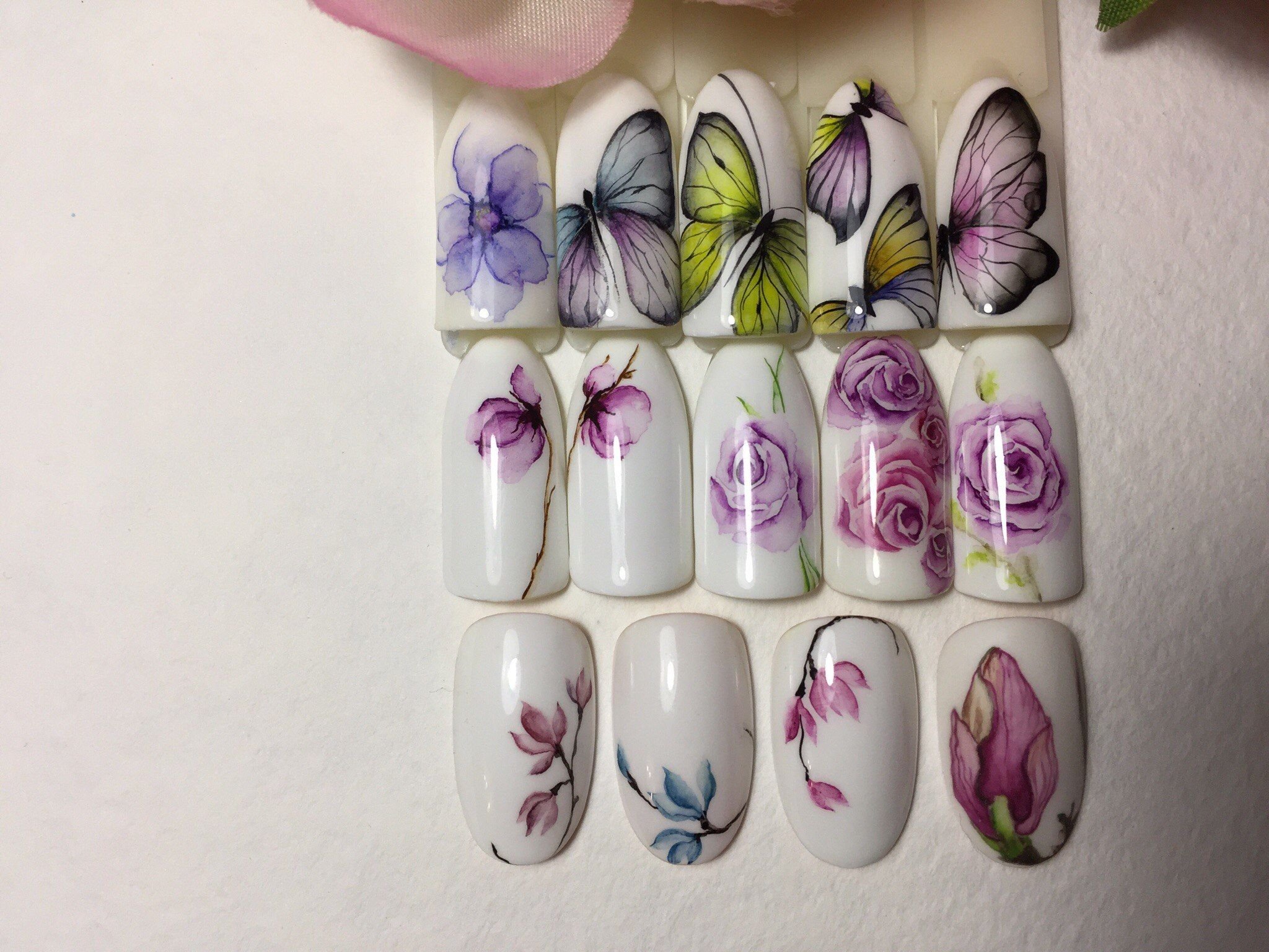 Акварельный маникюр на белом фоне