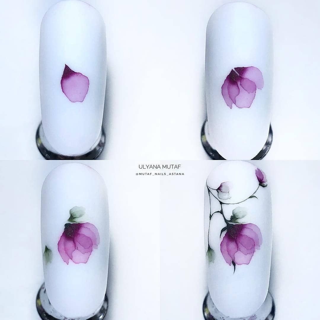 Акварель на ногтях пошагово