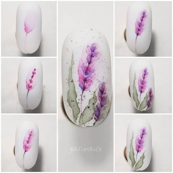 ![Акварельный дизайн на ногтях пошагово]()