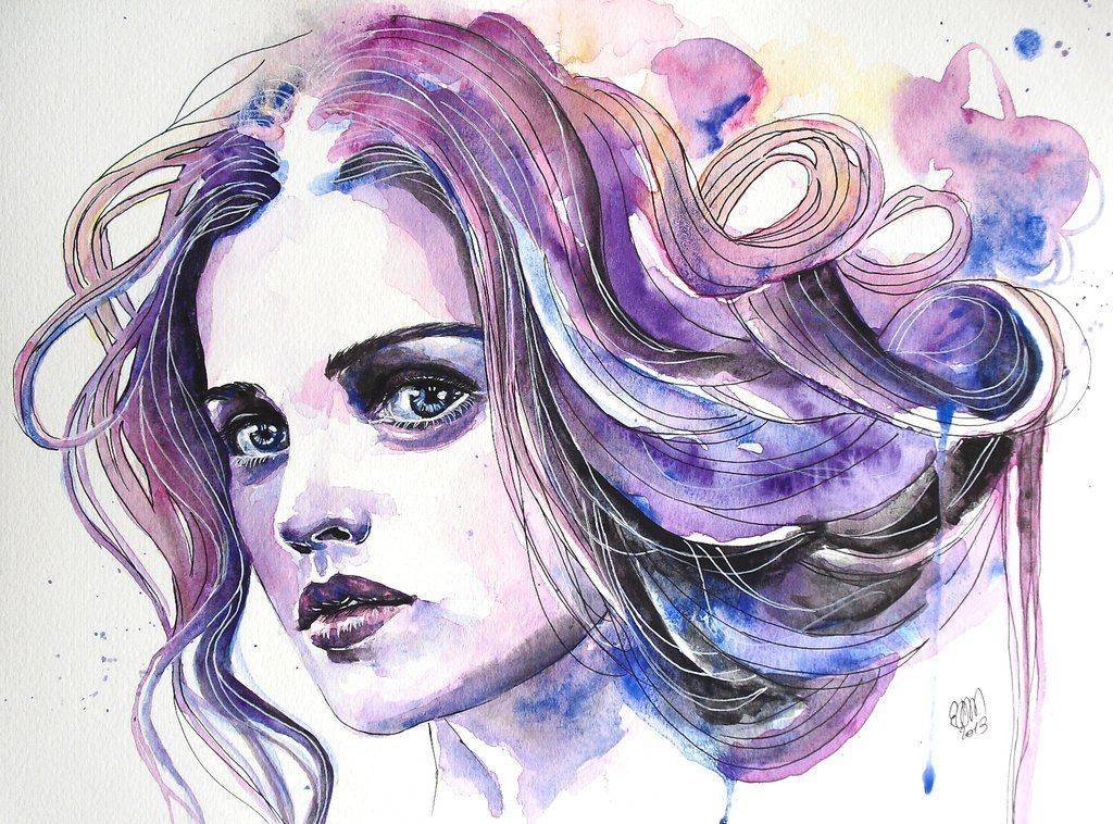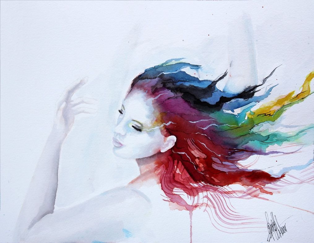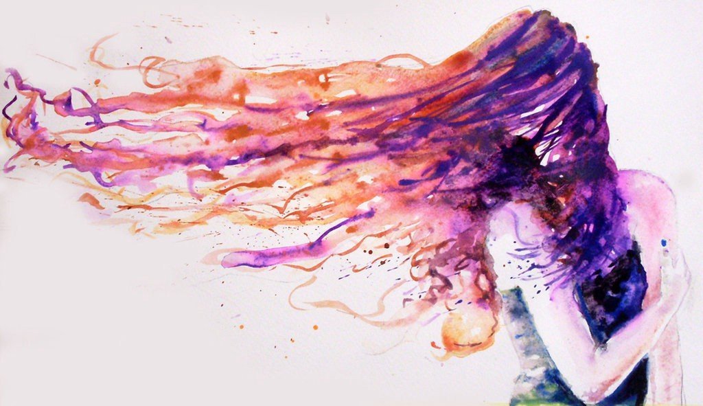 Девушка волосы акварель