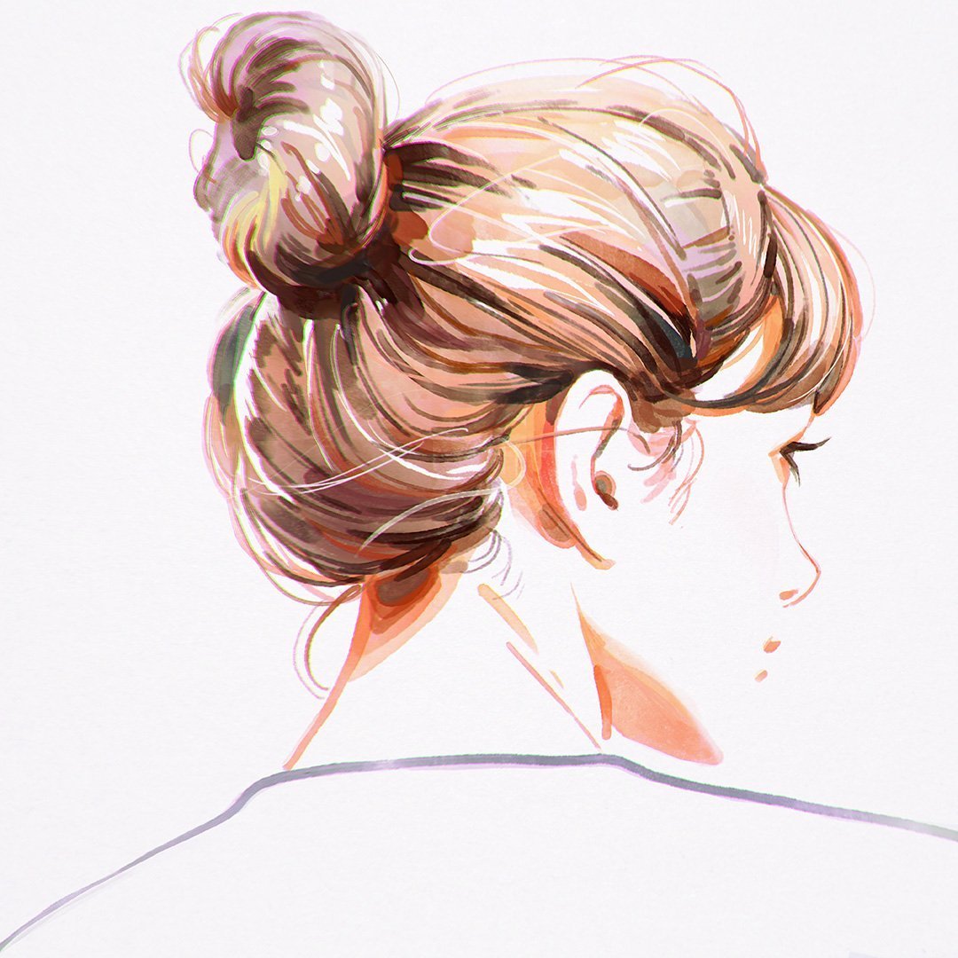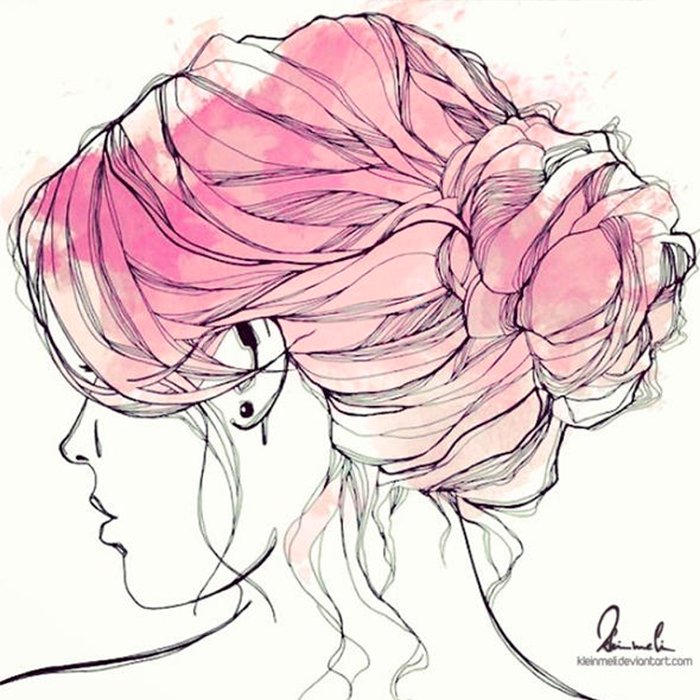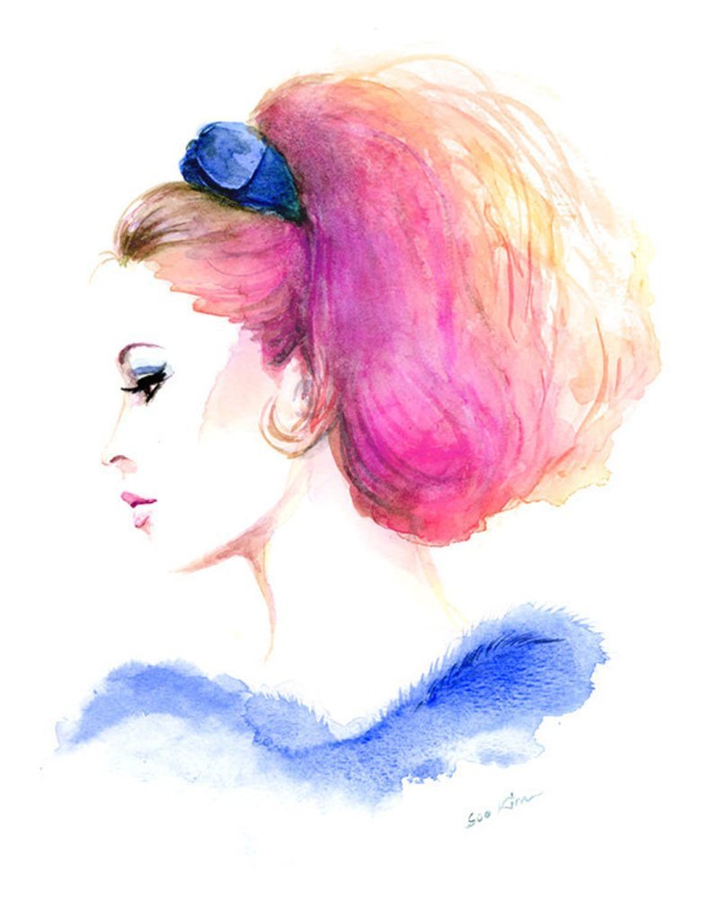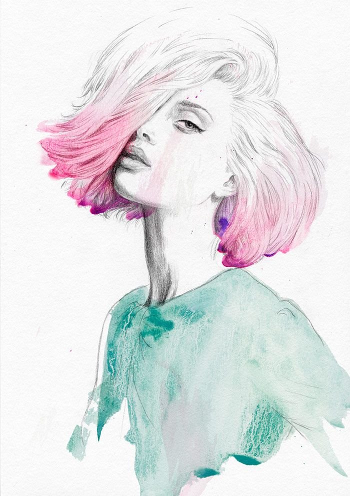 Рисунок прически акварелью